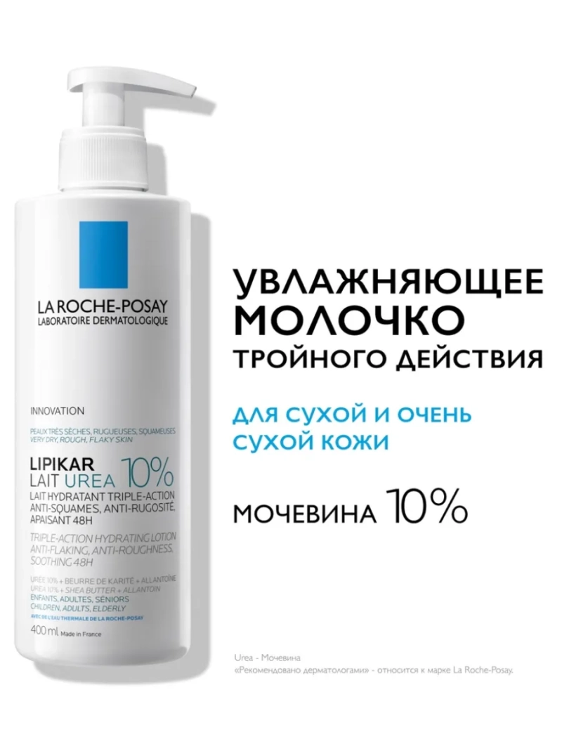 Увлажняющее молочко для тела с отдушкой Lipikar Lait UREA 10% предназначено для нормальной, склонной к сухости и сухой кожи младенцев, детей и взрослых. Увлажняющий крем для тела питает нежную и чувствительную кожу, восстанавливает ее защитный барьер и предупреждает снижение защитных свойств сухой кожи, обладает противовоспалительным действием. Безопасное и мягкое средство, подходящее для взрослых и детей, включая новорожденных. Термальная вода ЛяРош в составе средства богата селеном и является природным антиоксидантом. Некомедогенный лосьон обогащен витаминами и натуральными экстрактами для дополнительного увлажнения, которые питают кожу и способствуют восстановлению ее защитного барьера. Крем для тела ля рош для очень сухой кожи разработано с учетом всех потребностей самих чувствительных типов кожи. Успокаивающий крем помогает справляться с раздражением, зудом и воспалениями, возвращая сухой коже её естественное здоровье. Средство идеально подходит для ежедневного использования и обеспечивает интенсивное увлажнение и питание на протяжении длительного времени, делая поврежденную кожу мягкой, гладкой и здоровой. Обеспечивает комфорт и смягчение даже самой сухой, чувствительной и атопичной кожи взрослых, детей и новорожденных младенцев 0+. Бархатистая и мягкая текстура питательного флюида быстро впитывается и не оставляет белых следов на коже и одежде после нанесения. Безопасная формула средства не вызывает раздражения и не закупоривает поры. Не оставляет липкости и не стягивает кожу после впитывания. Без отдушек и красителей. Протестировано под контролем педиатров и дерматологов. Гипоаллергенный санскрин подходит для нежной кожи. Для всех типов кожи, в том числе кожи, склонной к аллергии и атопии. Наносите крем баттер на чистую сухую кожу легкими массирующими движениями до полного впитывания. Откройте для себя французскую аптечную косметику - это идеальное средство ля рош посэй успокаивает и уменьшает ощущение дискомфорта. Ощутимо повышает эластичность кожи.!