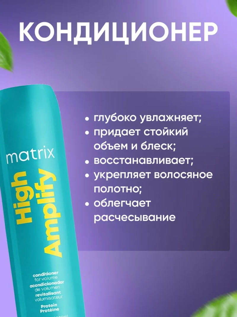 Тонкие, лишенные объема волосы требуют много времени, стайлеров и косметических средств для укладки. Профессиональня линия L'Oreal Matrix Total Results High Amplify (Лореаль Матрикс Тотал Резалтс Хай Амплифай) разработана для того, чтобы укладка была быстрой и легкой. Салонный кондиционер High Amplify идеально работает с базовым шампунем с протеинами и с шампунем глубокой очистки (ШГО), но может использоваться и как отдельный продукт. Бальзам из серии для ослабленных волос наполняет пряди жизненной энергией. Средство с легкой формулой и богатым составом без силиконов с большой дозой протеинов создана для придания максимального естественного объема и роскошного блеска слабым и негустым волосам. Гидролизат протеина пшеницы запечатывает повреждения, усиливает и восстанавливает на клеточном уровне, разглаживая локоны изнутри и уплотняя их. Пантенол отвечает за насыщение волос оптимальным количеством влаги. Катионовые полимеры обволакивают каждый волос невесомой оболочкой, которая предупреждает механические повреждения, гарантирует невероятный блеск и пышный объем. Провитамин В5 утолщает каждый волосок, снимает раздражение и успокаивает кожу. Миндальное масло снимает статическое электричество. Ультралегкая текстура средства добавляет естественную легкость укладке и надолго сохраняет объем. Инновационные составы с активным увлажняющим и восстанавливающим действием обеспечивают проникновение питательных компонентов вглубь волоса, гарантируя мягкость, силу и блеск. Мощный комплекс активных веществ делает волосы менее жесткими, укрепляет и разглаживает структуру. Кондиционер заботится о кончиках, предотвращает их обламывание и дальнейшее сечение. Регулярное использование кондиционера поможет минимизировать использование дополнительных средств по уходу за волосами, силиконовых спреев – несмывашек, масел и флюидов для разглаживания. Средство предотвращает электризацию волос, имеет антистатический эффект, делает волосы послушными, гладкими и облегчает расчесывание и укладку.