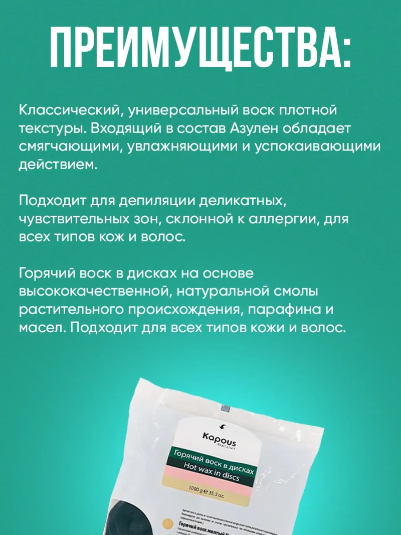 Крем для восковой депиляции коротких волос — это идеальное средство для достижения гладкой и ухоженной кожи. Жирорастворимый воск с ароматом "Молоко" и широким роликом обеспечивает максимальный комфорт и эффективность при удалении коротких и жестких волос после бритья. Благодаря своей кремообразной текстуре, он легко наносится на кожу и обволакивает каждый волос, что делает процесс депиляции более эффективным. Данный воск специально разработан для загорелой или смуглой кожи, что позволяет использовать его в любых условиях. Легкий и приятный аромат "Молоко" остается на коже после процедуры, добавляя ощущение свежести. Важно отметить, что воск не оставляет липкости на коже, что обеспечивает максимальный комфорт во время и после депиляции. Плотная консистенция воска требует более длительного разогрева, однако это необходимо для достижения оптимальной температуры, при которой воск будет наиболее эффективным. Для использования рекомендуется применять один воск в картридже, что обеспечивает максимальную гигиену и безопасность клиента. Состав воска включает тщательно подобранные компоненты, такие как Hydrogenated Styrene/Methyl Styrene/Indene Copolymer, Ethylene/VA Copolymer, Hydrogenated Microcrystalline Wax, Paraffin и другие ингредиенты, которые обеспечивают высокое качество и безопасность процедуры. Применение воска очень простое: вставьте картридж с воском в специальный аппарат и через 10-15 минут воск будет готов. Нанесите воск на поверхность кожи в направлении роста волос, накройте пленку воска бумагой для депиляции и прижмите ладонью. Когда воск остынет, резким движением снимите бумагу против роста волос. Доверьтесь надежному и высококачественному жирорастворимому воску с ароматом "Молоко" и широким роликом, чтобы получить идеально гладкую и ухоженную кожу на долгое время. Закажите сейчас и наслаждайтесь результатом!
