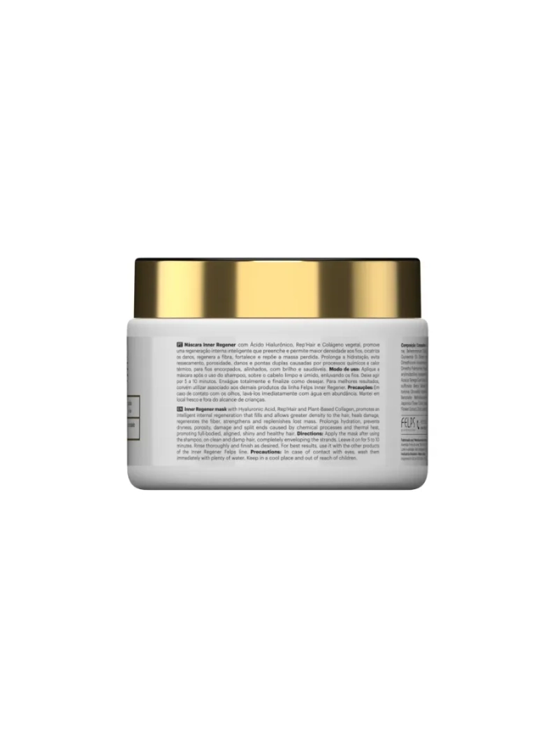 Маска-регенерация Felps Professional Inner Regener Regeneration Mask заполняет и придает волосам большую плотность, закрывает повреждения, восстанавливает волокно, укрепляет и восполняет утраченную массу.Используется после кислотного активатора для стабилизация ph-баланса волос.Линия Inner Regener – это инновация в лечении волос. Благодаря гиалуроновой кислоте, Kerestore 2.0, Rep'Hair, фитокератину, аминокислотам, Nutrimel и растительному коллагену, он способствует интеллектуальной внутренней регенерации, которая наполняет волосы и придает им большую плотность, лечит повреждения, восстанавливает волокно, укрепляет и восполняет утраченную массу.Продлевает увлажнение, предотвращает сухость, пористость, повреждения и секущиеся кончики, вызванные химическими процессами и термическим нагревом. Независимо от типа вашей шевелюры, наша маска приносит радость и блеск каждой пряди. Она подходит как для тонких, так и для густых волос, придавая им уникальный объем, мягкость и гладкость. Слабые и сухие волосы обретают новую жизнь благодаря интенсивному питанию и увлажнению, которые приносит наша формула. Не упустите возможность порадовать их роскошными локонами с помощью маски для волос. Подходит для пористых, кудрявых, вьющихся, жирных, длинных волос. Для мелированных и блондинок после осветления. Восстанавливающая маска улучшает структуру пористых прядей, устраняет ломкость и избавляет от секущихся кончиков. Средство улучшает кровообращение, действует как маска с перцем против выпадения и служит стимулятором роста. Идеально для блондинок: защитная функция предотвращает желтизну блонда, сохраняя насыщенность пигмента. Эффект легкого расчесывания даже непослушным вьющимся прядям. Естественная красота локонов за несколько применений: реконструктор придает густоту тонким жидким волосам, перевоплощая их в шелк. Нежная питающая текстура крема покрывает волос и усиливает липидный слой. Применение. Нанести по всей длине, избегая попадания на кожу головы на 5 минут, смыть водой.