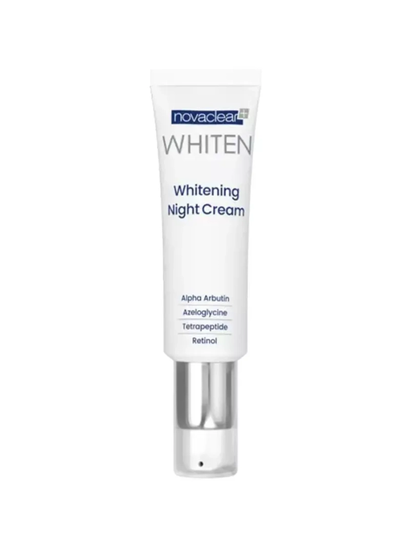 Полное наименование: Novaclear Whiten крем ночной отбеливающий, 50 мл. Производитель: Equalan Pharma Польша. Активные ингредиенты, входящие в его состав, борются с обесцвечиванием кожи и замедляют процессы старения (антивозрастной эффект).