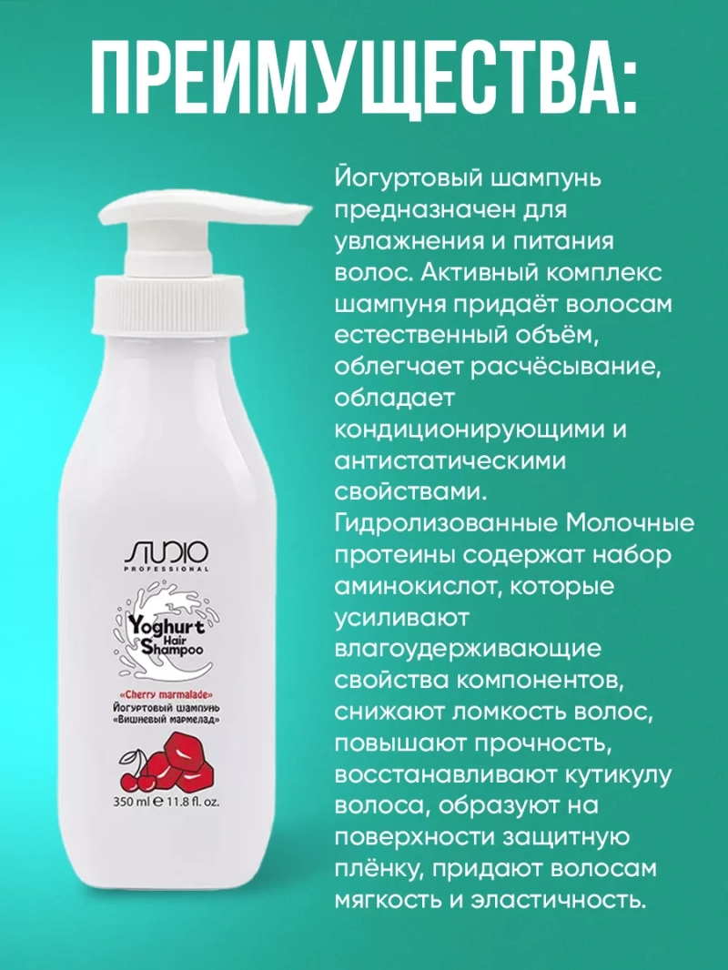 Йогуртовый шампунь для волос «Вишнёвый мармелад» линии Studio Professional, 350 мл